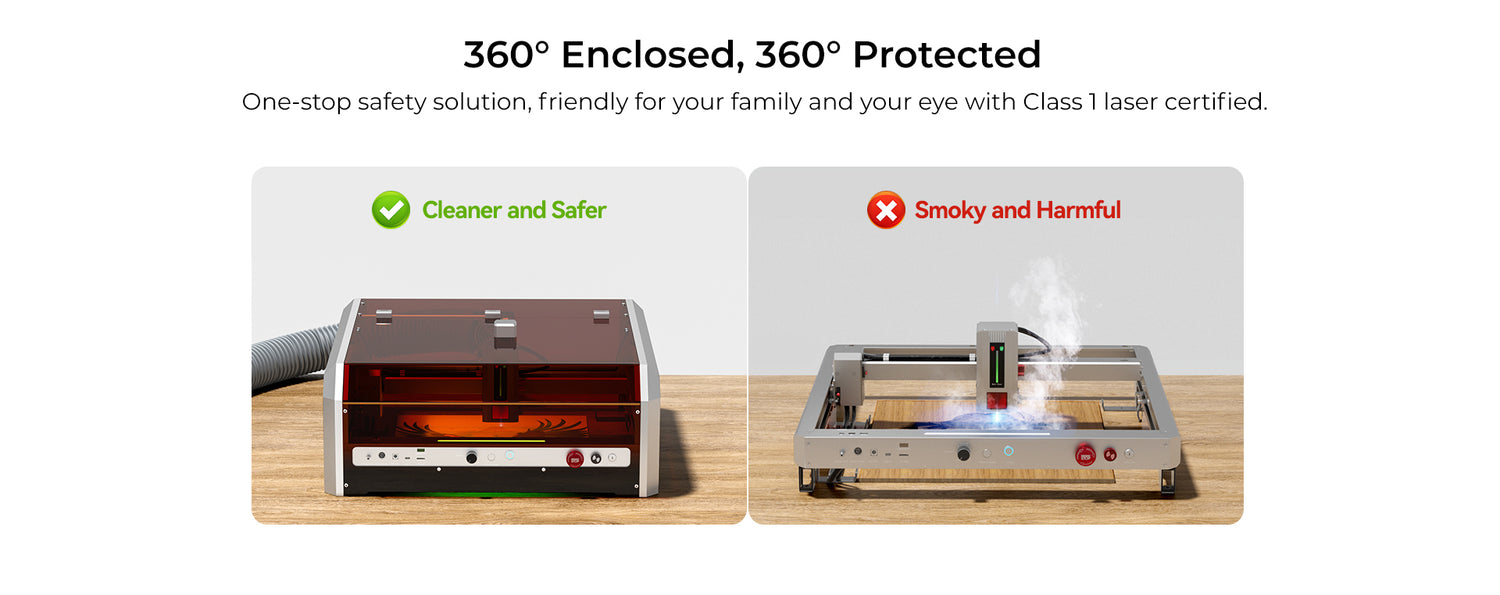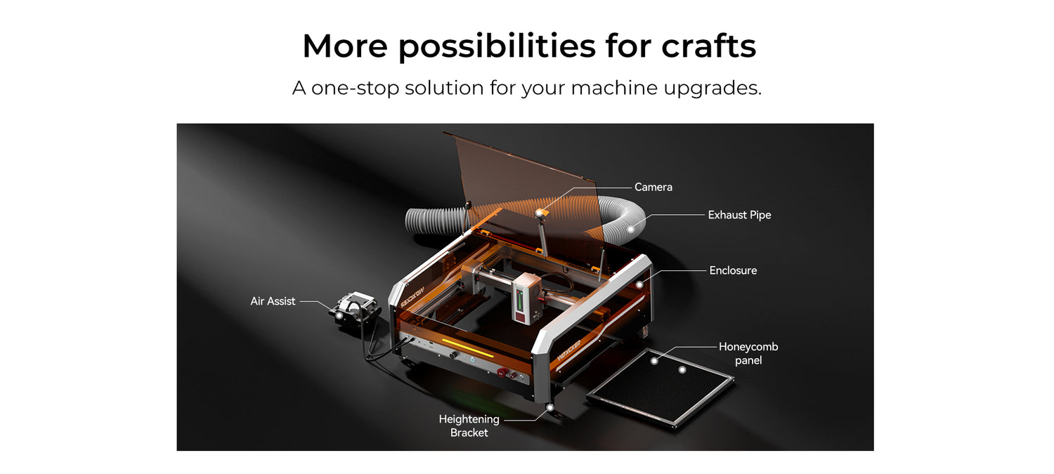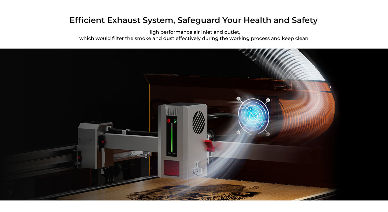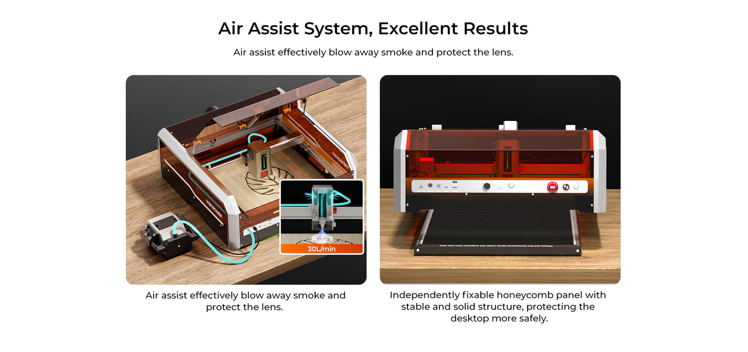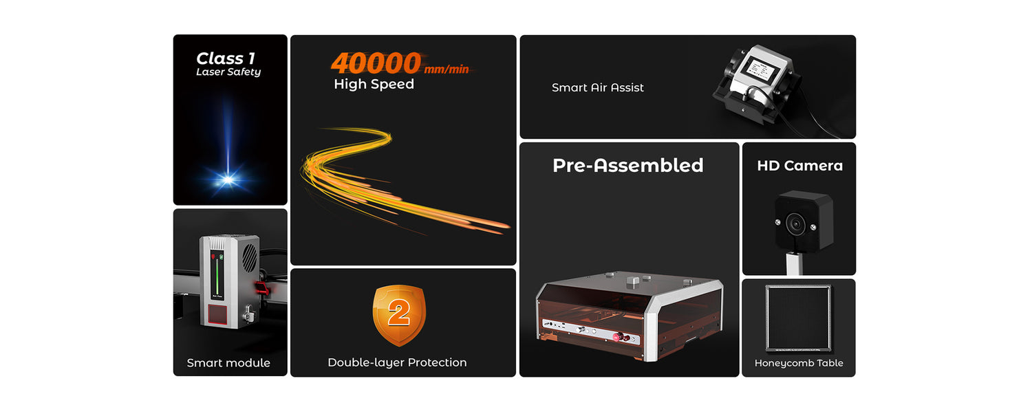 Plug-and-play with built-in stand, HD camera, exhaust fan, honeycomb panel, air assist & more -