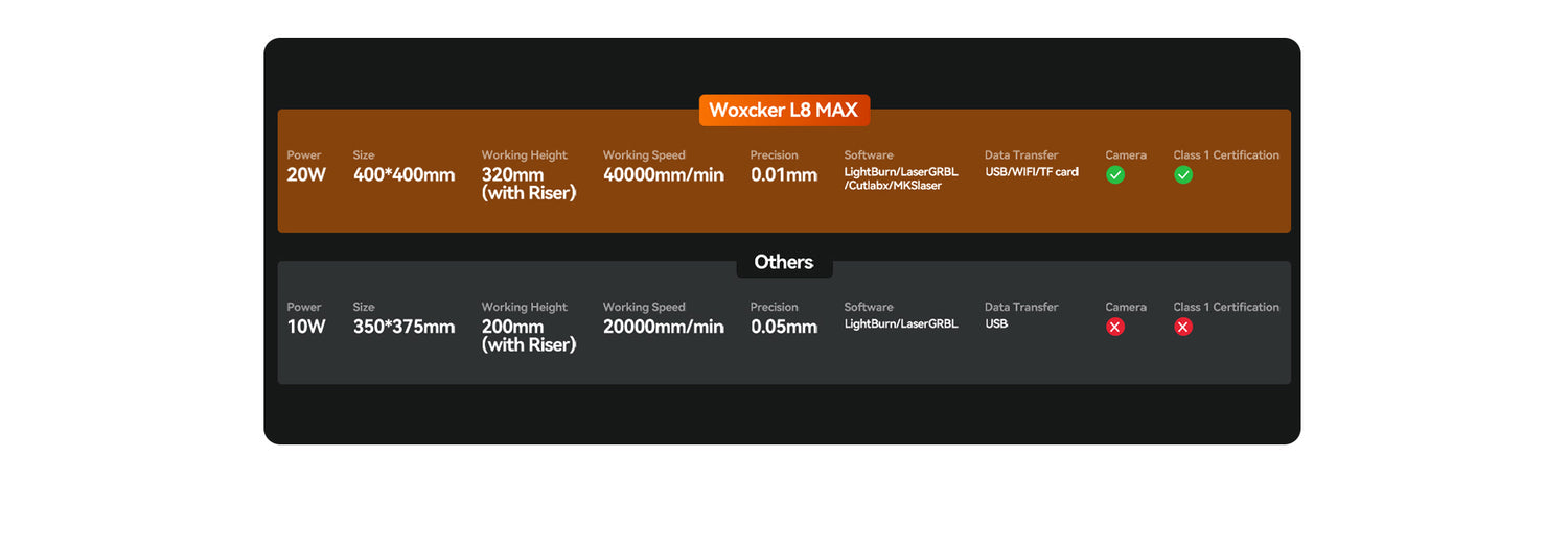 Woxcker L8 MAX 20W – All-in-One Laser Engraving & Cutting Machine
